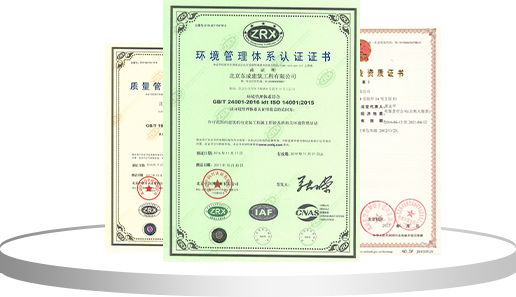 先后取得北京市建設(shè)委員會(huì)核發(fā)的機(jī)電工程專業(yè)承包、裝飾裝修專業(yè)承包、建筑智能化專業(yè)承包等多項(xiàng)專業(yè)承包施工資質(zhì);并順利通過ISO9001、T50430質(zhì)量管理體系認(rèn)證,ISO14001環(huán)境管理體系認(rèn)證和OHSAS18001職業(yè)健康安全管理體系認(rèn)證,完成三個(gè)體系的整合認(rèn)證工作。